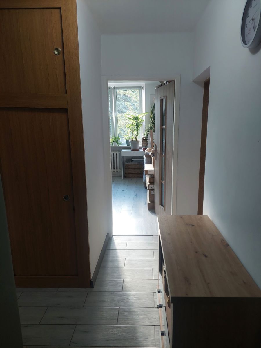 Mieszkanie wykończone jest w uniwersalnym stylu — panele podłogowe, gładzie, eleganckie płytki oraz tapeta tworzą przytulną atmosferę. Okna plastikowe gwarantują izolację termiczną i akustyczną, dodając komfortu na co dzień.